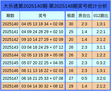 上期转头:大乐透第2025148期转头:前区03、04、14、30、32 + 后区08、12。